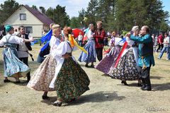У главной сцены не смолкали аплодисменты (по обыкновению, «основной огонь» на себя «вызвал» Пряжинский дом культуры — именно на плечи его работников легла львиная доля культурной программы). К радости гостей, разнообразие в концертную программу внесли артисты Пряжинского района из Чалны, Святозера, Эссойлы, Ведлозера, исполнив частушки, песни, зажигательную кадриль. С радостью встречали зрители и приезжих гостей. Особый фурор произвела группа мужчин в «самом расцвете сил» «Айя-баллети» из Финляндии. Самоиронии и смелости этого творческого коллектива можно было только позавидовать. Безусловным дополнением к яркой фольклорной палитре стали выступления гостей из Архангельской области с рассказами о чудесах Уймы и интересном персонаже Сене Малине, гостей из финского города Липери, откуда родом практически все герои повести Майю Лассила «За спичками», гостей из Ярославской области с забавными историями о простофилях пошехонцах. Запомнились всем также распевистые байки в исполнении Олега Коншина и старинная пляска фольклорно-этнографического ансамбля из Вологодской области. Всех ярких побратимов по фольклору и артистизму, пожалуй, и не перечислишь. Веселье продолжилось и в рамках этнополян: гости смогли побывать в цветочном крошнозерском раю и уйти оттуда с цветочным или березовым венком в волосах, окунуться в этномоду вместе с чалнинцами, поиграть в интеллектуальную игру по типу шахмат «Лиса и гуси» со святозерцами, «порыбачить» в самодельном озере с Пряжинской библиотекой. В целом же полян было видимо-невидимо и каждый мог найти развлечения на свой вкус. Кстати, в этом году появилась новая традиция — гости смогли постоять на волшебной киндасовской шубе, которая приносит в дом счастье и богатство.